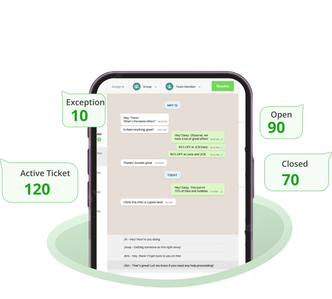 Resolve customer queries instantly with Team Inbox with multiple tags, rich agent data analytics