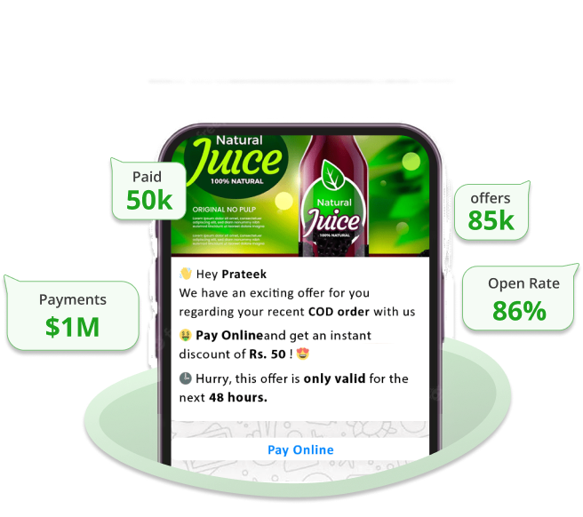 Now Hublle’s Custom Chat bot allows you to receive both Prepaid and COD Order Directly on Whatsapp